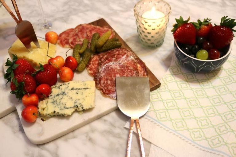 If Alyssa’s parents come to stay over the weekend and, certainly, just because it is so unquestionably good, the actress keeps a cluster of cheese on hand at all times, to toss together a hasty cheese platter. “There is nothing like a good cheese plate,” Alyssa says, who is a big admirer of aged gouda and bleu cheese. Here is one she piece together for us, which also contains cherries, grapes, strawberries, cured meat and pickles.